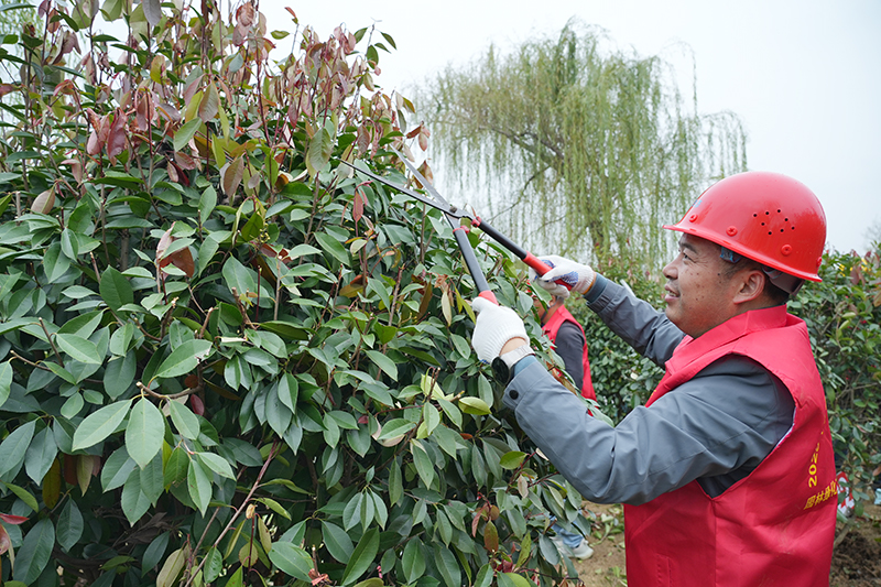 实践操作树木修剪,按照城市园林绿化日常养护管理方式,在公园绿地现场修剪两株灌木( 红梅和红叶石楠球)。