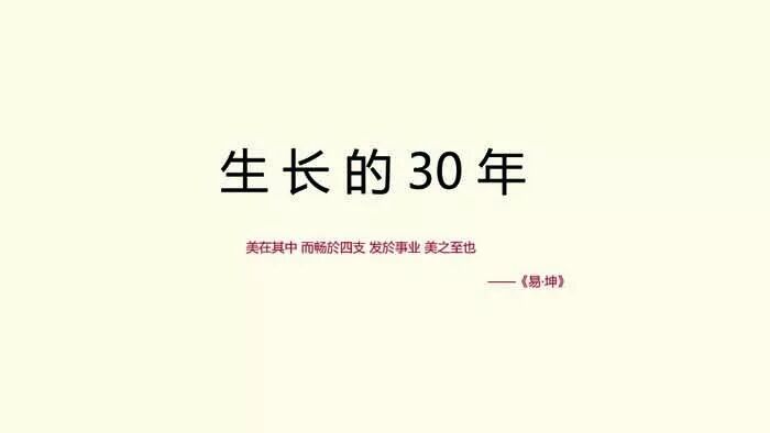 从学校毕业步入社会,就像学校把我们当做一粒粒的种子催化好了,洒向社会各个角落的土壤里,经历“生根—发芽—生长—抽枝干—开花—结果”,直到长成参天大树,沐浴在春夏秋冬四季的年复一年的风雨洗礼之中。《易·坤》中一句话“美在其中,而畅於四支,发於事业,美之至也”,是我三十年热爱中华园林文化艺术职业生涯的真实写照,供大家思辨。